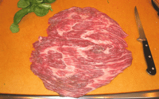 Beef steak has fat on it. Waygu beef steak has fat in it, described as “genetic marbling of fat inside the cow’s muscle tissue. The cows are a special breed and hand raised from birth to slaughter. Kobe Beef is a brand name and there are others. Thought I’d try it, so I got this steak from Balducci at $60 a pound!
