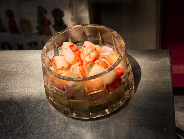 – The mayo is taken out of the fridge, mixed with Dijon mustard, diced olives, pickles, onions, lardons of bacon and set aside: 20 minutes