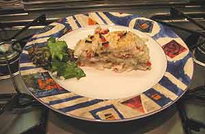 But why not stack and bake fish fillets on top of each other, present the whole dish to guests and then divide it up and serve it like so much lasagna? “Well,” you say, “You need a filler or stuffing. After all, there is more to lasagna than pasta,” What to use? We agree that tomatoes are out. Instead, something light in texture, taste and seasoning is needed to separate and compliment the fish.