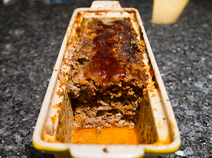 PLEASANT GROVE MEATLOAF TERRINE (revised) Yield: about 20 slices, more if cold and cut thin See abbreviations, if needed • 1/4 lb (optional) soppressata or pepperoni (about 20 thin slices) • 2T EVOO • 1 medium red or yellow onion, diced • 2 cloves garlic, pureed or 2t of prepared garlic • 2T diced jalapenos, drained • 8 piquante sweet peppers “Peppadews” , drained and • 1/4C fresh cilantro or parsley, finely chopped • S/P • 1T Dijon mustard • 2t Worchester Sauce • 4 dashes Tennessee Sunshine • 2 eggs • 1/3C diced tomatoes (I really like Muir Glen Fire Roasted Diced • 2 lbs ground sirloin • 3/4 lb fresh hot pork sausage, casings removed (Italian or Mexican) • 3/4C Panko or bread crumbs • 1/4C barbecue sauce or catsup for topping ———————————————————– 1. Preheat oven to 350F 2. Line the terrine with hard sausage slices or grease it with EVOO 3. Sauté onions to transparent in the EVOO 4. Add the garlic and jalapenos and heat briefly 5. Empty the sauté pan into a large bowl 6. Break the eggs in a prep dish, whisk briefly and then add them to 7. Add the sweet peppers and fresh cilantro or parsley 8. Add the mustard, Worchester, hot sauce and whisk well 9. Add the Panko and whisk 10. Add the sirloin and sausage and work it into the mixture, by hand, don’t over mix 11. Turn out the meatloaf and shape to fit the terrine 12. Place the meatloaf into the terrine and press to fit into the sides 13. Form a shallow trench with finger tips along the top of the meatloaf with barbecue sauce or catsup 14. Bake, uncovered, to 165F or slightly higher, about 45 minutes (see 15 Remove from oven and skim off the any unsightly fat that has bubbled 16. Find a spatula that fits the width of the terrine to slice and neatly or let cool completely and then remove entire meatloaf for slicing for cold servings Safety Note Ground meat and fresh sausage must be cooked to 165F before from the oven |