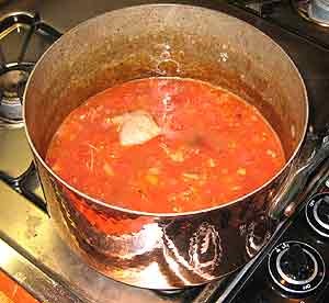 Canned Baked Beans with a tablespoon of molasses and two bay leaves, stirred in.