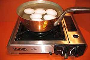 a. Bring some chicken broth to boil and drop in the shrimp. Simmer the shrimp for one minute.