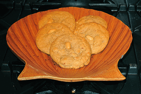 Yield: about 40 cookies See Abbreviations, if needed ½ lb (2 sticks) butter 1C firmly packed dark brown sugar 1C sugar 1t vanilla extract 2.5C APflour ½ t baking soda ½ t baking powder ½ t salt 2 eggs 1C coarsely chopped pecans, walnuts or peanuts 1/3C Heath Bar bits (find them in the supermarket …