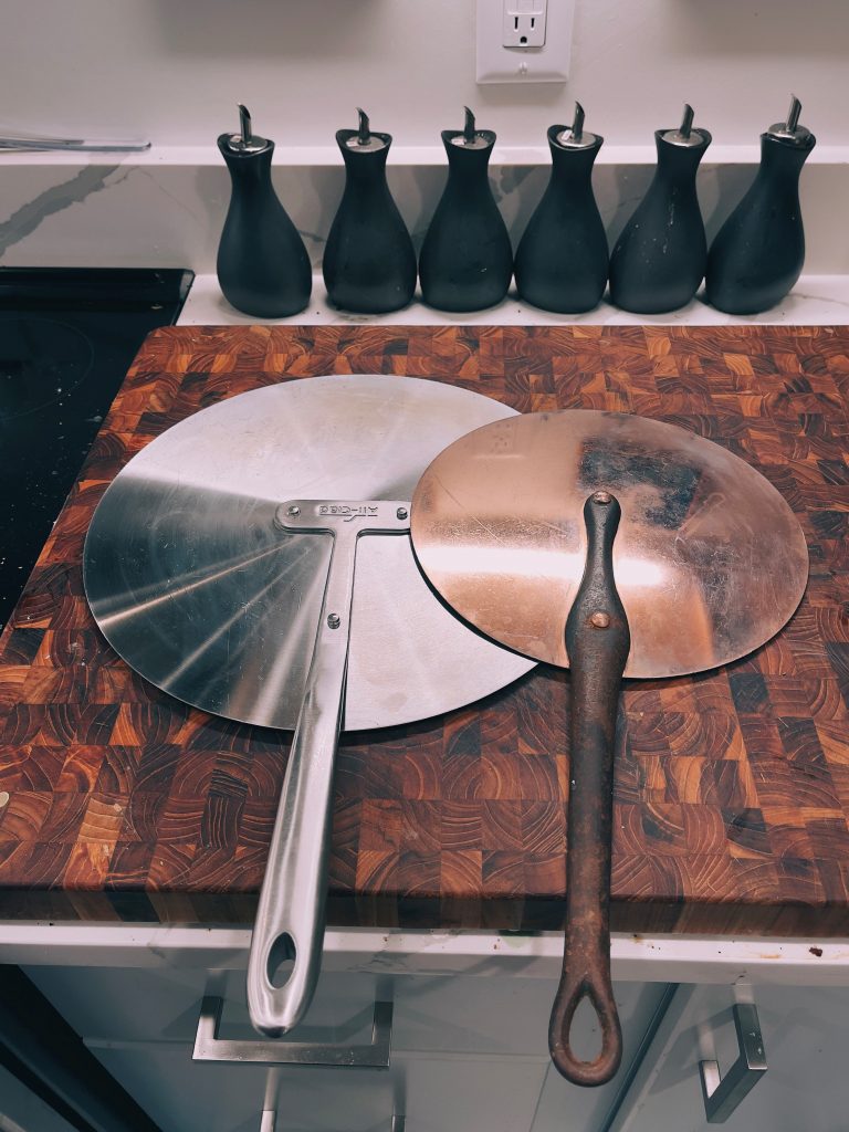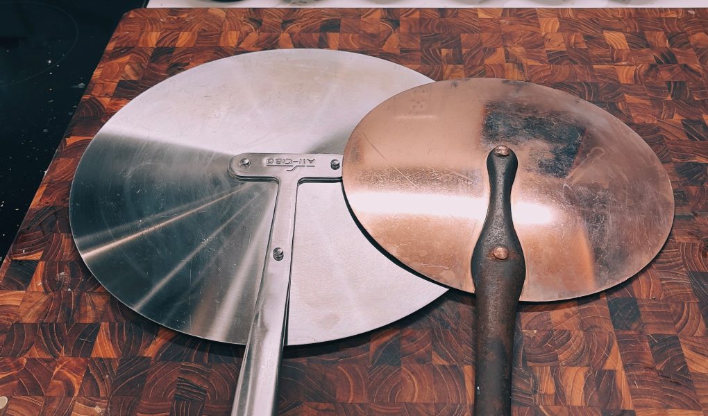 Save for my popcorn popper and double boiler, these two so called universal lids are all I have, the rest, seven or eight, have been tossed as unneeded. It’s fine if a new pot or pan you’re looking at comes with a matching lid, but don’t pay for one. Buy a universal lid instead. Al Clad makes nice aluminum ones. The copper one shown is an ancient purchase from Paris. Lids aren’t used much in commercial kitchens, but the few I worked in had one or two, usually of this universal type.